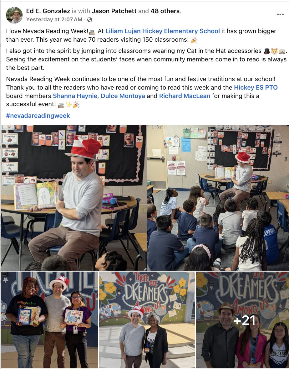The Nevada Independent CEO Jon Ralston and I were among the several community members and officials who volunteered during Nevada Reading Week last week. It was such a fun time, and I loved getting to read one of my favorite books, If You Give a Mouse a Cookie.