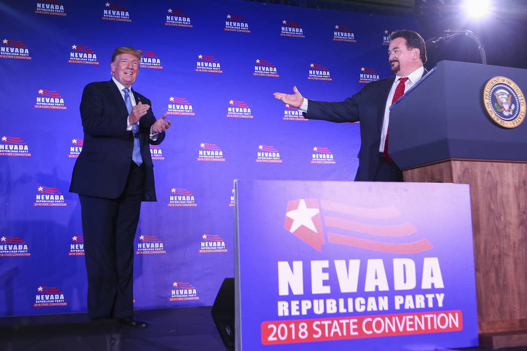 McDonald, a former Las Vegas City Council member, has headed the state party since 2012, defeating Las Vegas Sands lobbyist and political operative Robert Uithoven in 2013 and former Assembly candidate Nick Phillips in 2015. Although he initially ran as a party outsider, McDonald has touted a close relationship with Trump, who hosted a fundraiser for the party in 2016 and spoke at its 2018 convention.