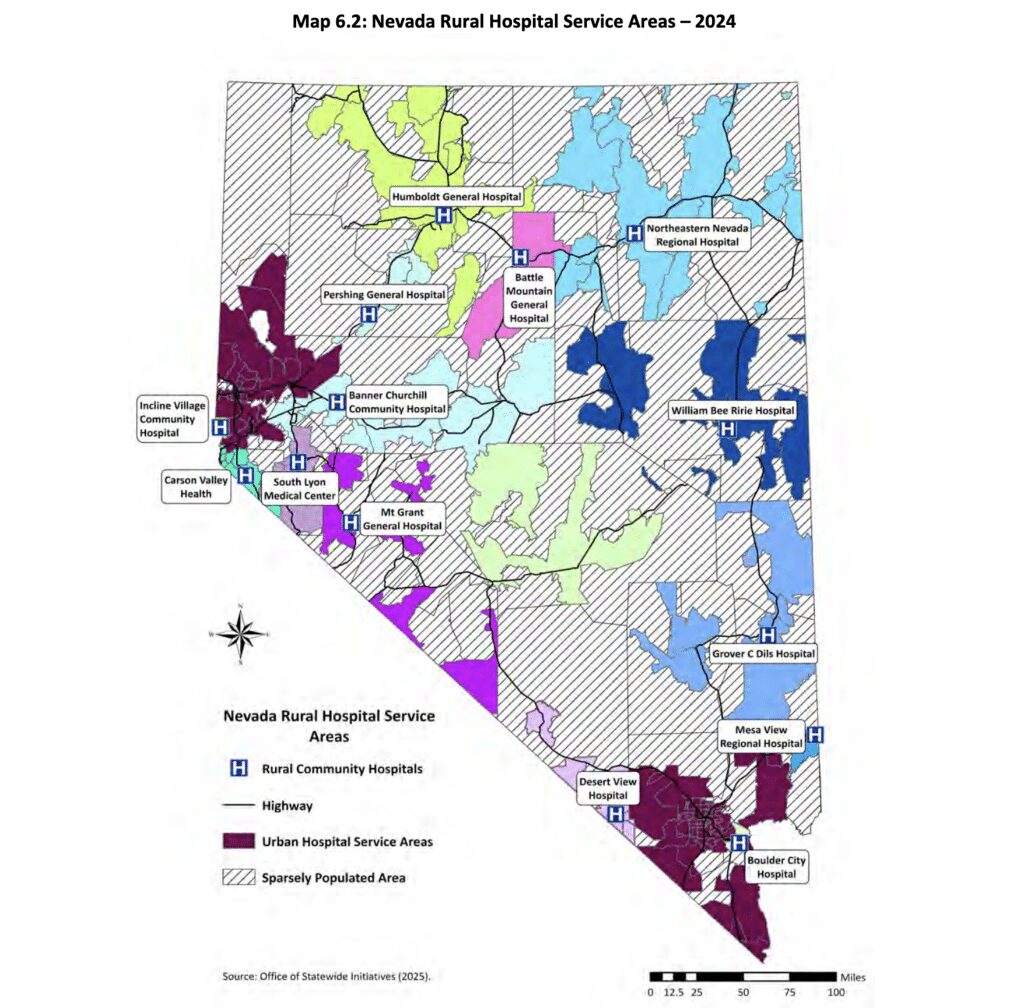 With providers overworked, patients are often left waiting months for appointments or forced to seek care outside their communities — many of which are in sparsely populated counties far from urban medical centers. According to the Nevada Office of Statewide Initiatives, “the average distance between acute care hospitals in rural Nevada and the next level of care or tertiary care hospital is 118 miles and the average distance to the nearest incorporated town is 46.3 miles.” These long travel times and related costs contribute to poorer health outcomes and further widen health disparities.